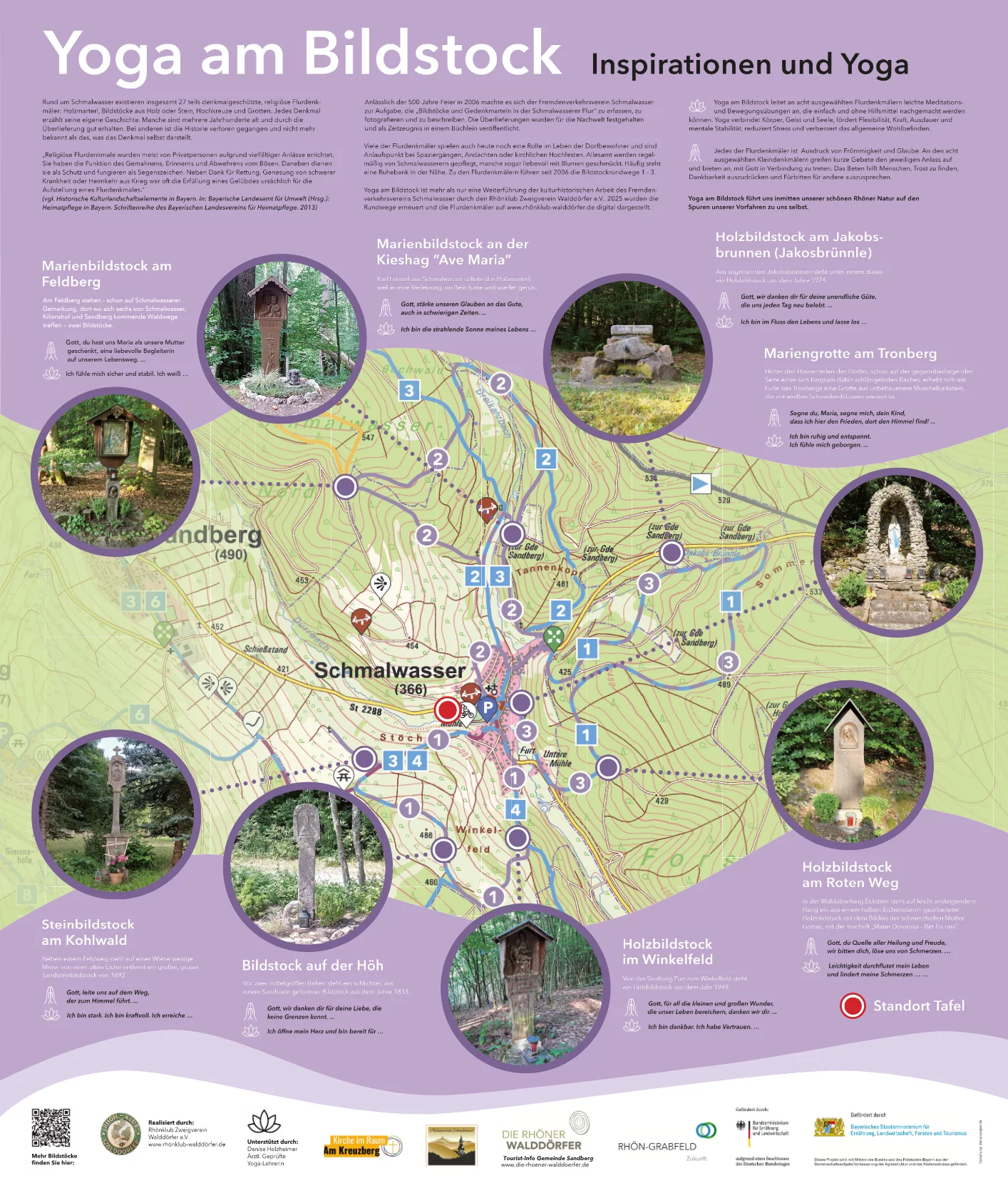 Yoga am Bildstock ist mehr als nur eine Weiterführung der kulturhistorischen Arbeit des Fremdenverkehrsvereins Schmalwasser durch den Rhönklub Zweigverein Walddörfer e.V.. 2025 wurden die Rundwege erneuert und die Flurdenkmäler auf dieser Website www.rhönklub-walddörfer.de digital dargestellt. Yoga am Bildstock leitet an acht ausgewählten Flurdenkmälern leichte und bekannte Meditations- und Bewegungsübungen an, die einfach und ohne Hilfsmittel nachgemacht werden können. Yoga verbindet Körper, Geist und Seele, fördert Flexibilität, Kraft, Ausdauer und mentale Stabilität, reduziert Stress und verbessert das allgemeine Wohlbefinden.